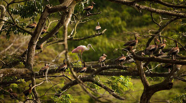 Costa Rica Activities Image: A variety of Costa Rica's birds sit visible in the branches of a tree.